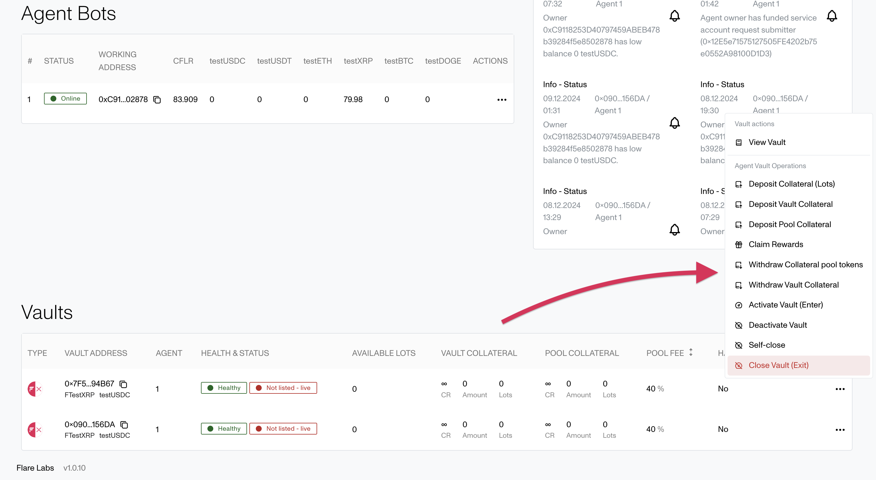 - Deposit Vault Collateral: Deposit collateral into the agent vault.
